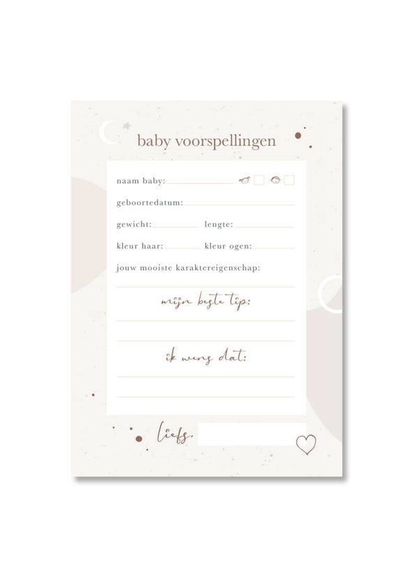 Laat alle gasten een kaart met baby voorspellingen invullen.