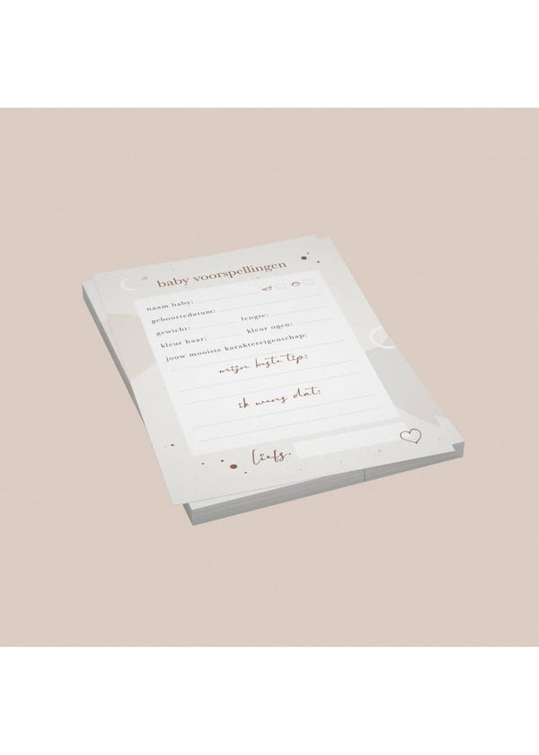 Deze kaarten zijn ook verkrijgbaar als set inclusief Mijn babyshower invulboek, waar de kaarten ingeplakt kunnen worden