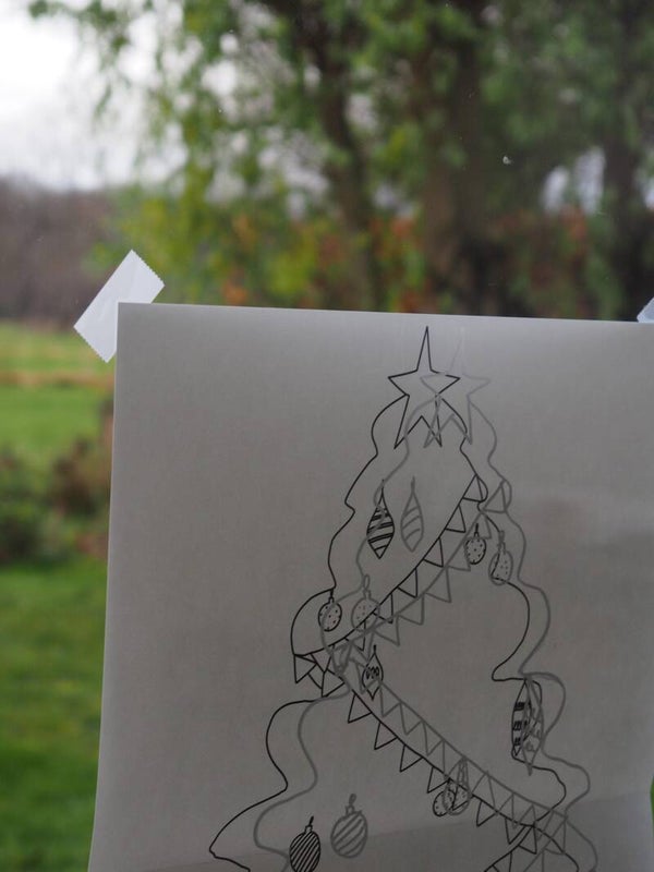 - Plak de sjablonen met plakband aan de buitenkant van je raam.