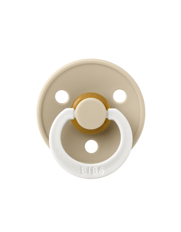 BIBS Colour is de originele fopspeen met een rond schild en een kersvormige speen.
