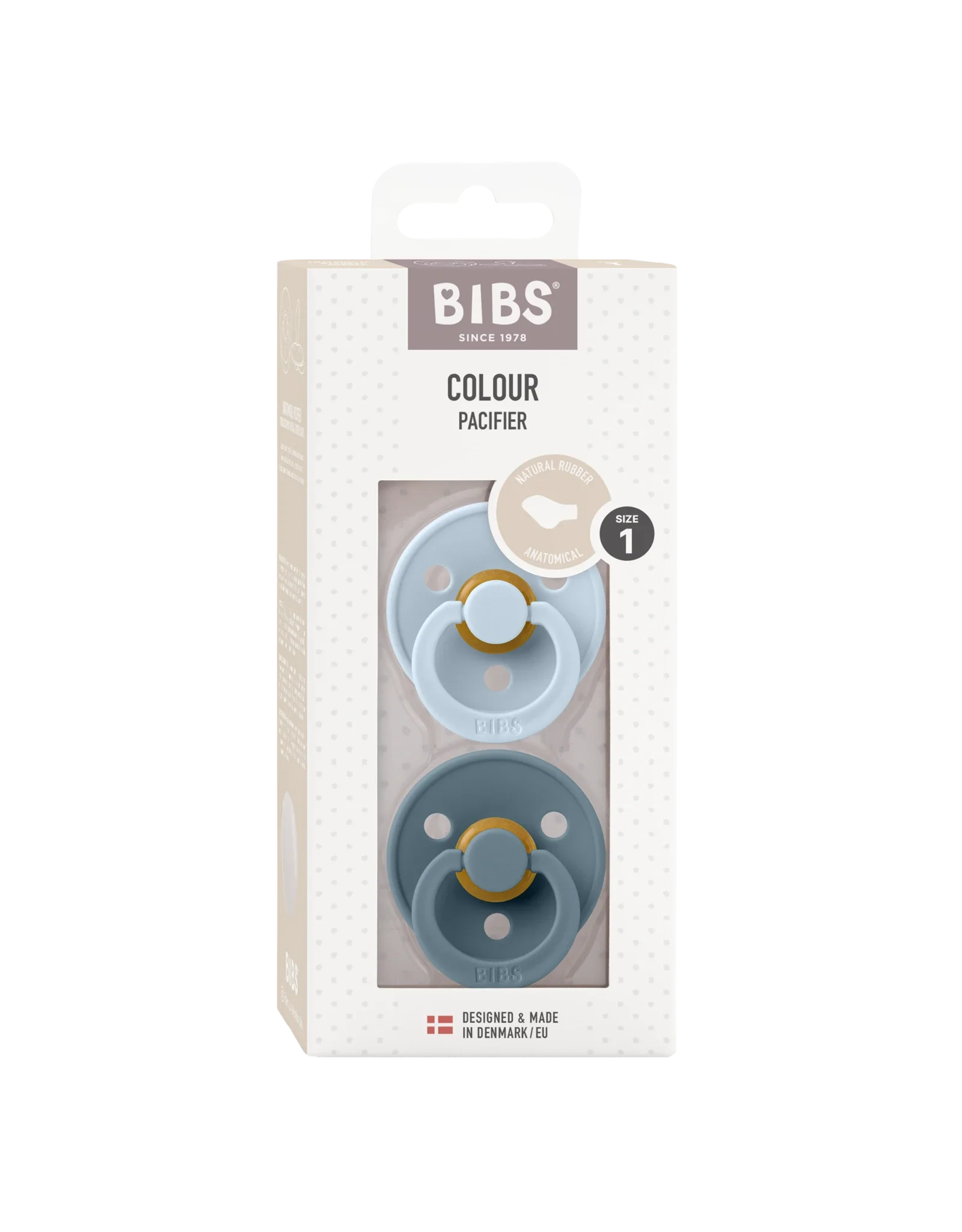 BIBS Colour is de originele fopspeen en heeft een rond schild.