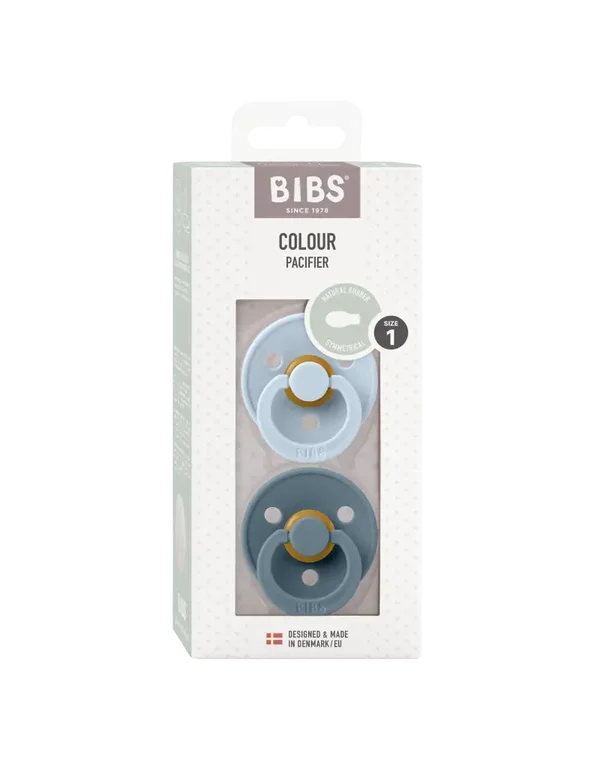 BIBS Colour is de originele fopspeen met een rond schild en een symmetrische speen.