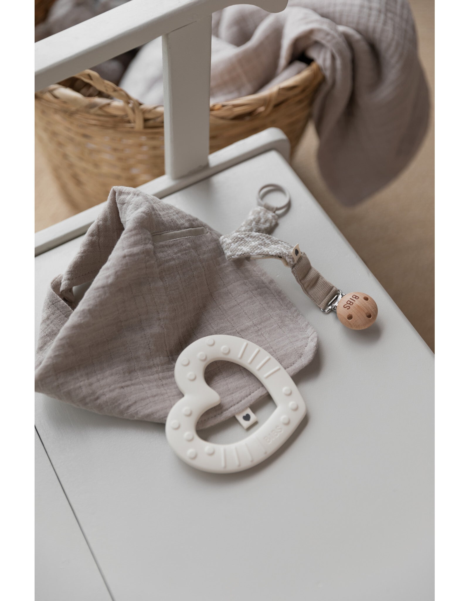 Gevlochten in mooie scandinavische kleuren en een klassieke retro-look. Heel mooi passend bij elke BIBS fopspeen.