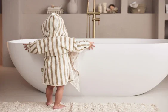 Lekker thuis gebadderd of gezwommen en daarna comfortabel ingepakt worden in deze schattige badjas van Jollein. Een heel fijn momentje!