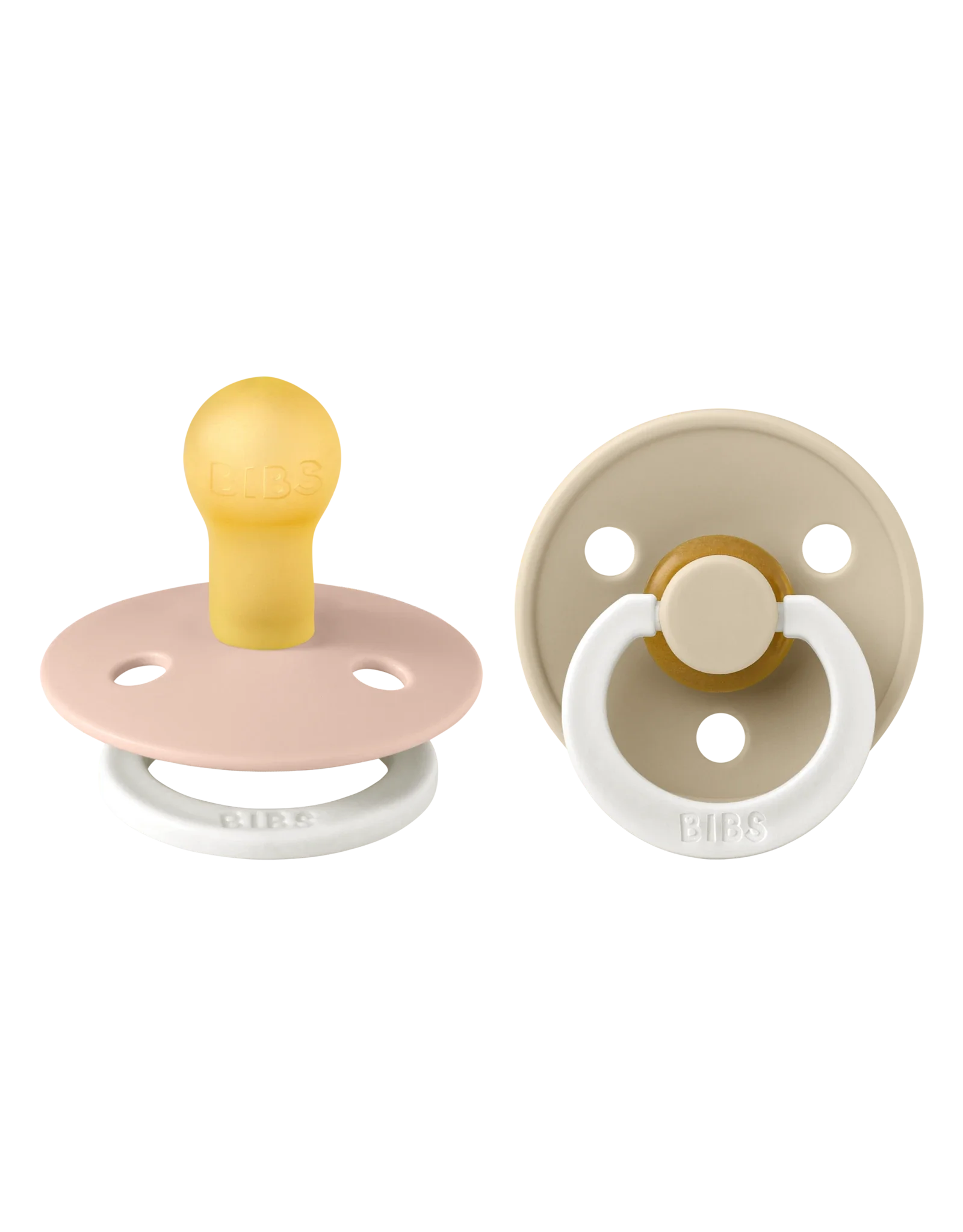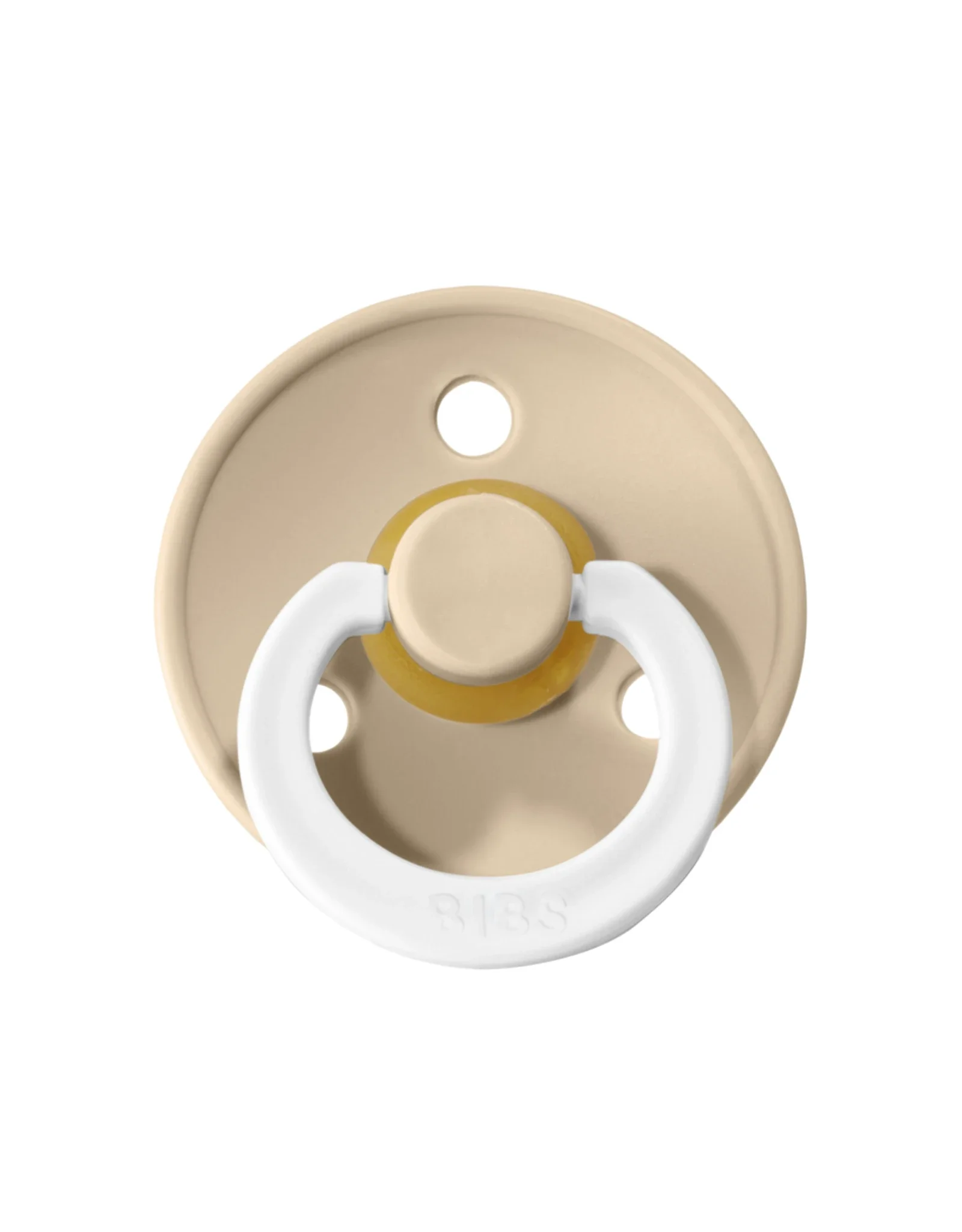 BIBS Colour is de originele fopspeen met een rond schild en een kersvormige speen.
