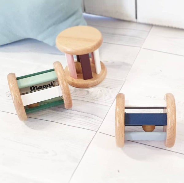 Er zit een klein houten balletje in het midden die een zacht geluid maakt, zodat de zintuigen van je kindje steeds weer opnieuw gestimuleerd worden om ermee te blijven spelen.