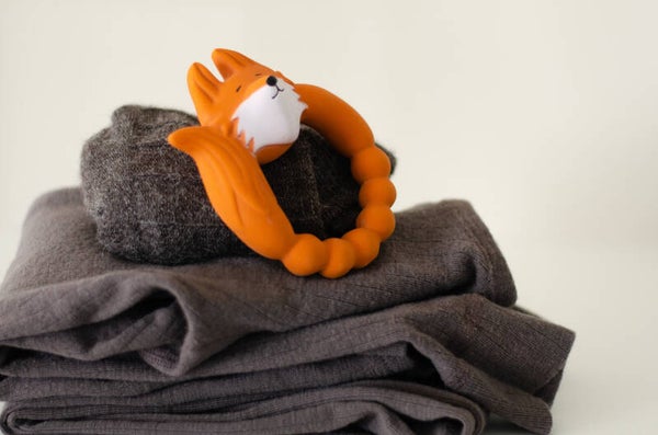 Deze knappe vos helpt je kindje om de pijn van doorkomende tandjes te verlichten.