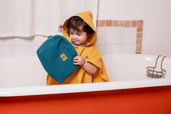 Heeft je kind net heerlijk gebadderd en is het tijd om af te drogen? Dan is deze poncho perfect om aan te doen.