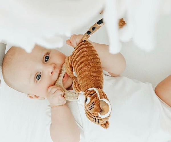 De bijtring is voorzien van een leuke, zachte tijger knuffel en dit maakt het bijtplezier nog groter!