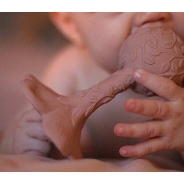 Gemaakt van natuurlijk rubber en zo ook geschikt om te gebruiken als bijtspeeltje.