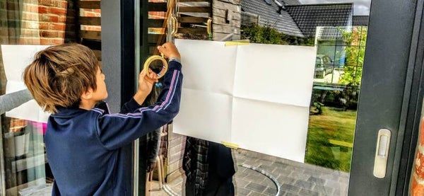 - Knip de sjablonen uit en bevestig ze aan de buitenkant van je raam
